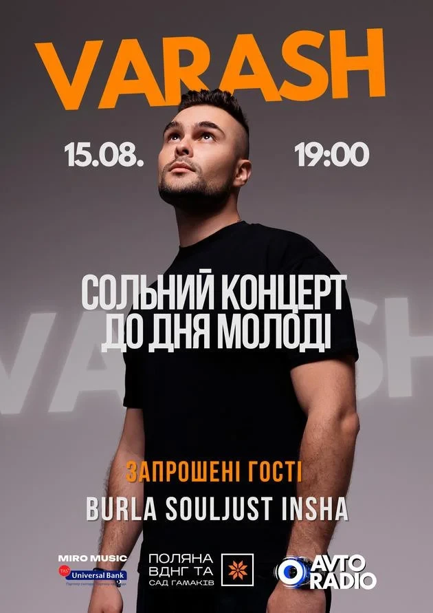 VARASH — український поп/хіп-хоп артист, чиї хіти «БЕЗ ТЕБЕ», «ТОБОЮ», «СЕРЦЕ МОЄ» вже підкорили мільйони. Його музика — це щирі тексти, впізнаване звучання і кач, який ти точно відчуєш кожною клітинкою