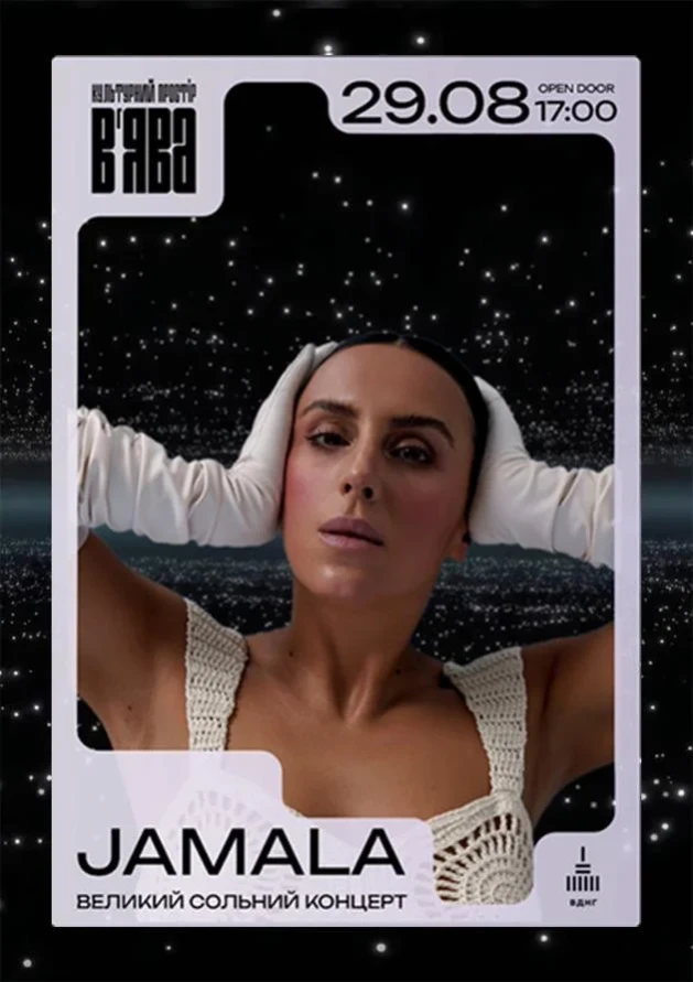 Цього літа, 29 серпня (п’ятниця) Jamala, вже за традицією, відіграє сольний концерт просто неба, на сцені культурного простору В’ЯВА. Справжній живий звук, повний склад музикантів.